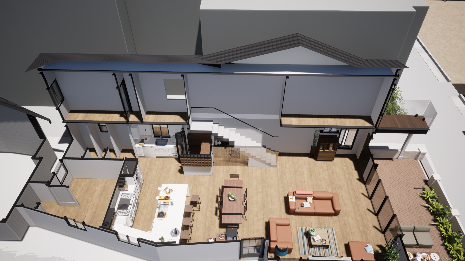 This visualization work served not only as a communication tool, but as a design process in itself—supporting architects in refining layout, understanding material interactions, and testing real-world conditions within a digital space. Whether for a hillside ADU or a multi-unit urban infill development, these models were crafted to bridge the gap between drawing and experience—turning technical data into environments people could see, feel, and understand.